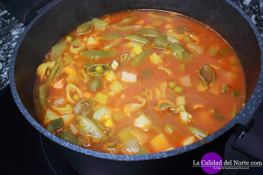 Una vez comience a hervir, bajamos el fuego, y lo dejamos cocinando hasta que las verduras estén casi tiernas. Más o menos unos 20 minutos a fuego lento.